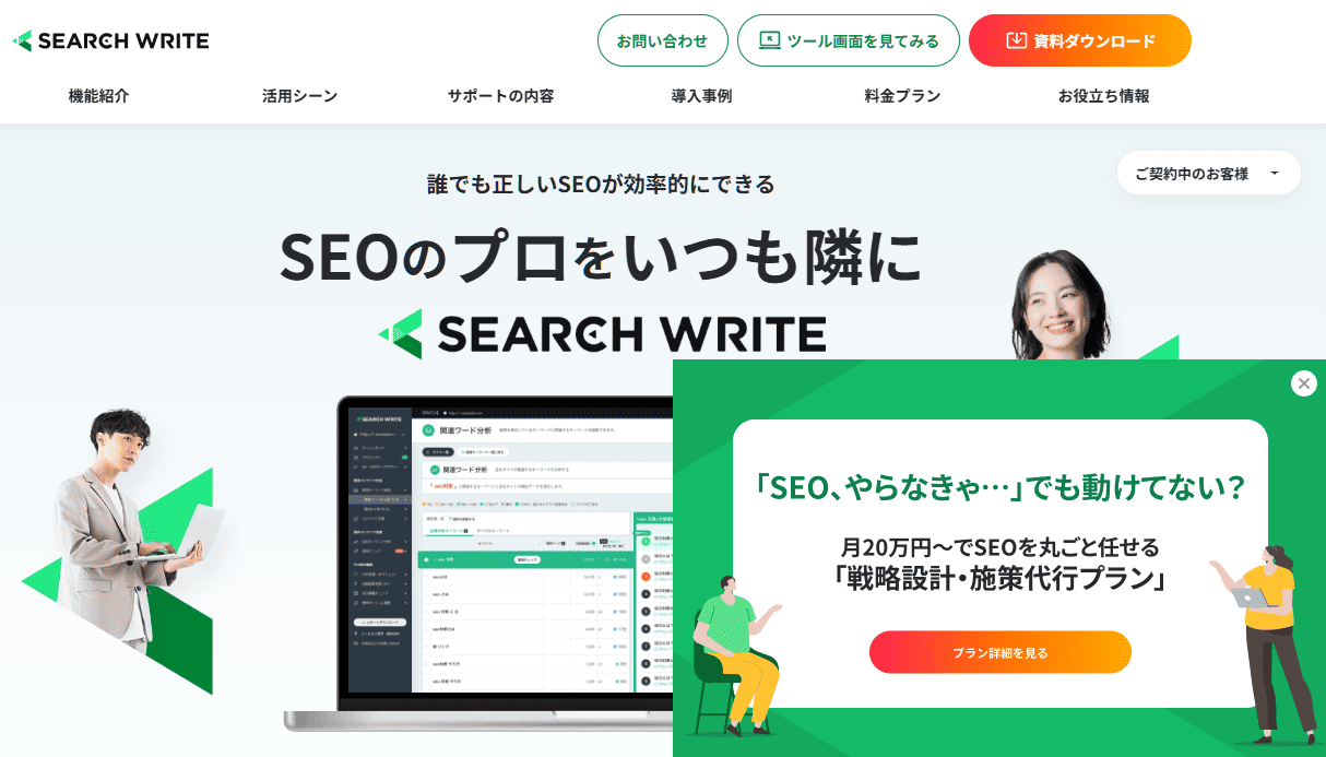 SEARCH WRITEは、キーワード選定・構成の作成・執筆・公開後の効果測定・リライトまで制作の全工程をサポートします。