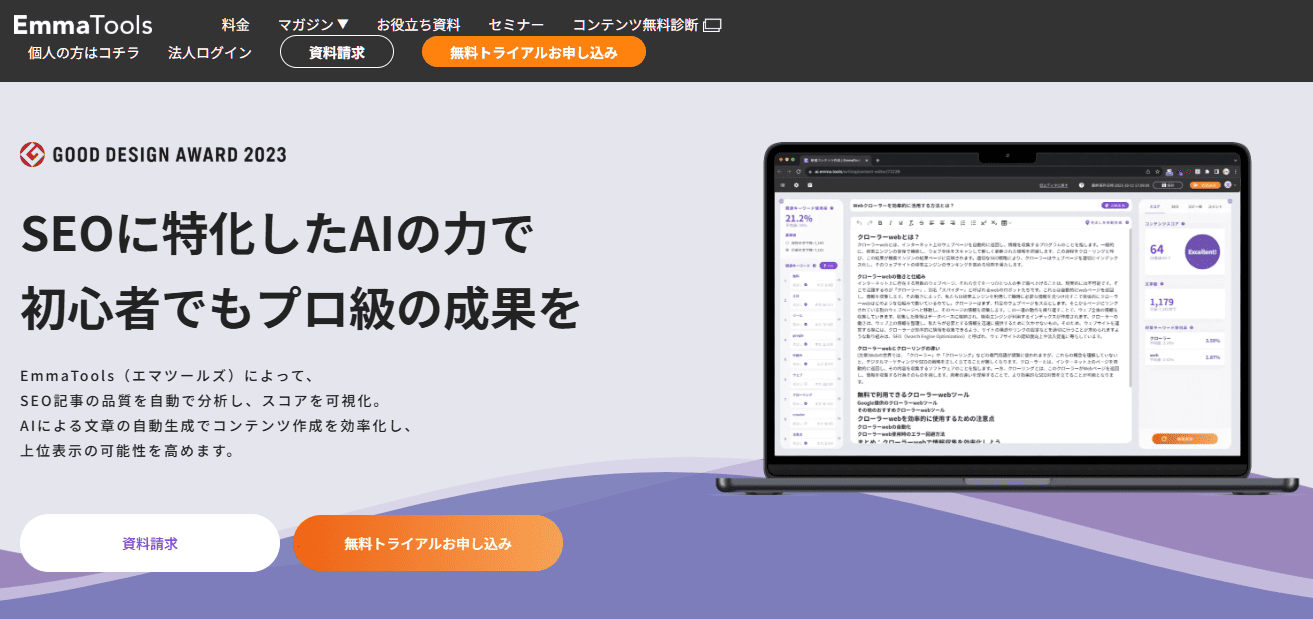 EmmaTools(エマツールズ)は、AI技術を駆使してコンテンツの品質評価とライティング支援を行う次世代型のツールです。