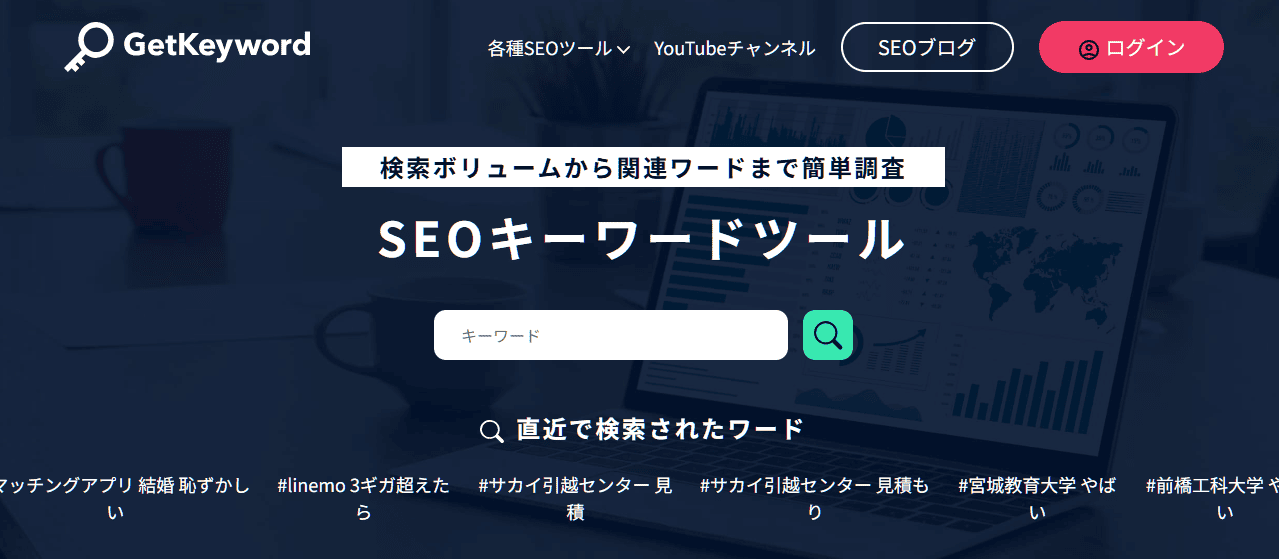 たとえば、特定の語句が月間に検索される回数を示す検索ボリュームや、関連キーワード候補を調査できるのが特徴です。