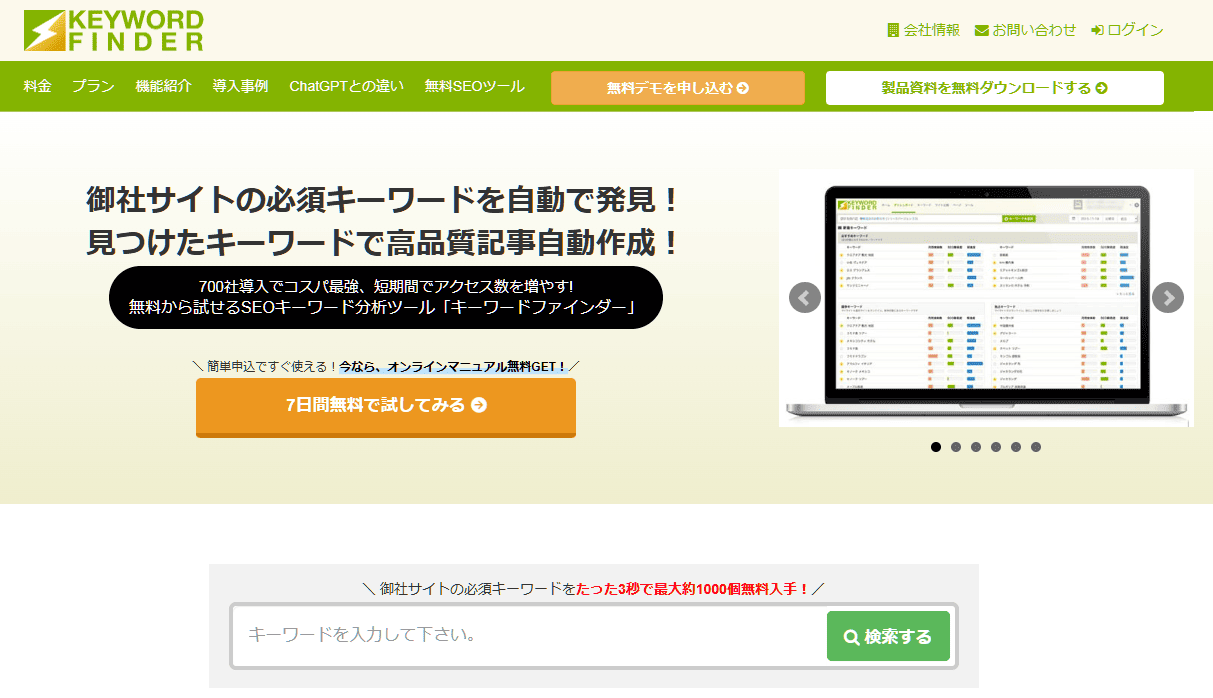 売上や問い合わせにつながりやすいキーワードの発見に特化し、キーワードファインダーは設計されました。