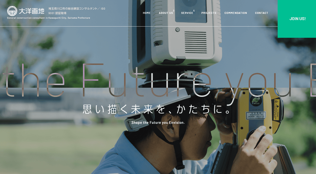 大洋画地のホームページデザインは、建設コンサルタントのプロフェッショナルさを体現する、クリーンで機能的な構成が特徴です。