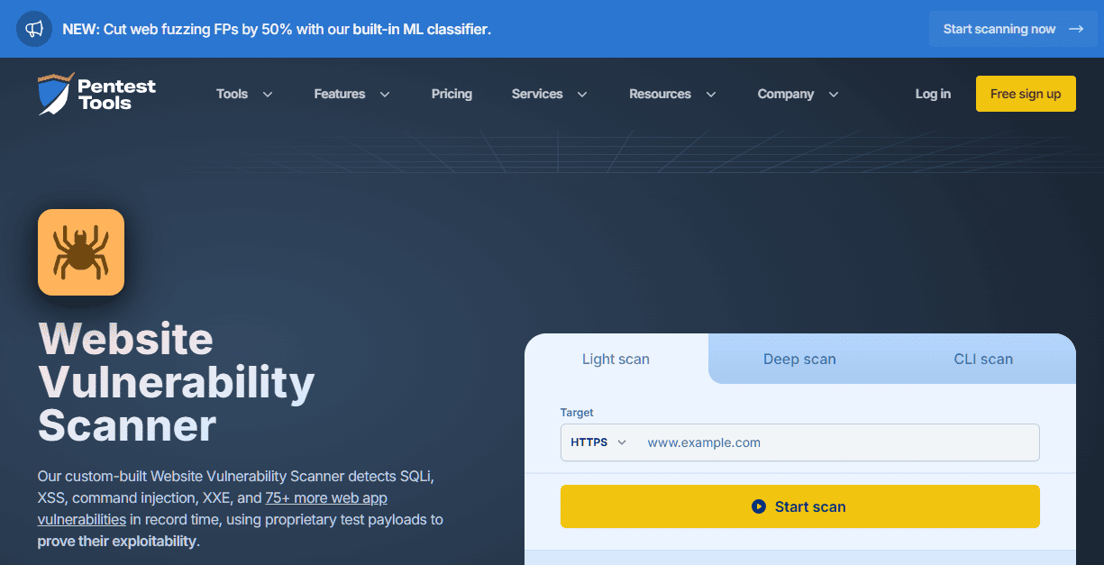 Pentest-Tools Website Vulnerability Scannerは、ホームページの脆弱性を手軽に診断できるオンラインツールです。