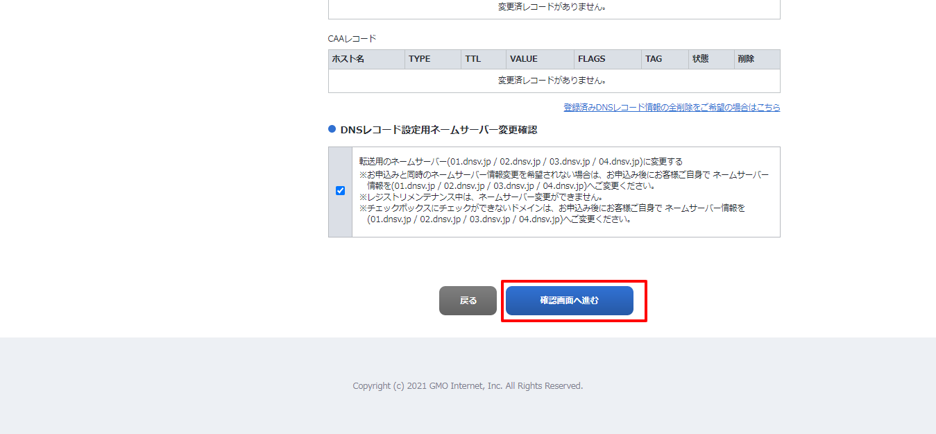 最後にページ下部にある「確認画面に進む」を選択しましょう。