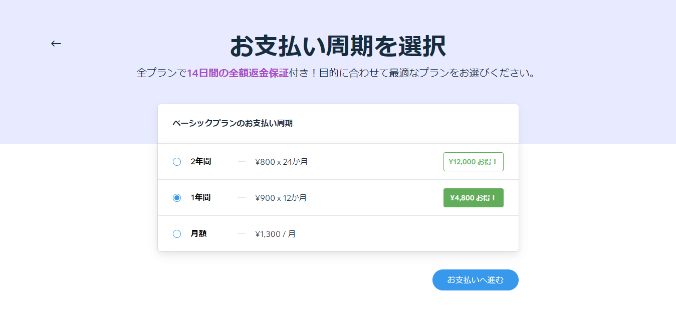 「月額」の契約では、ドメイン代を初年度から支払う必要があるので注意が必要です。