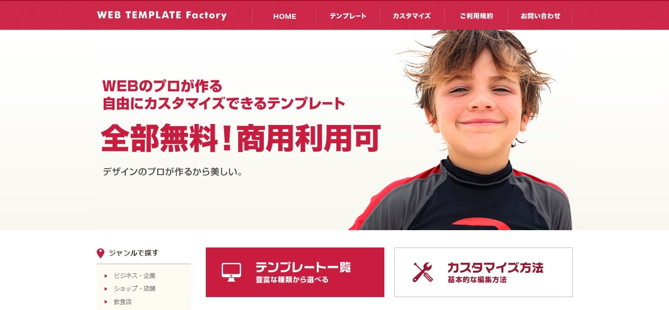 WEBテンプレート・ファクトリーは、自由にカスタマイズできるHTMLテンプレートを無料で配布しているWebサイトです。