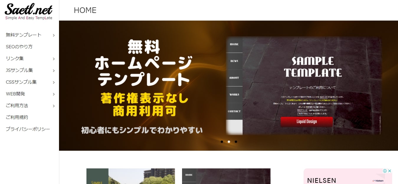 Saetl.netは、シンプルなホームページテンプレートを無料で配布しているWebサイトです。