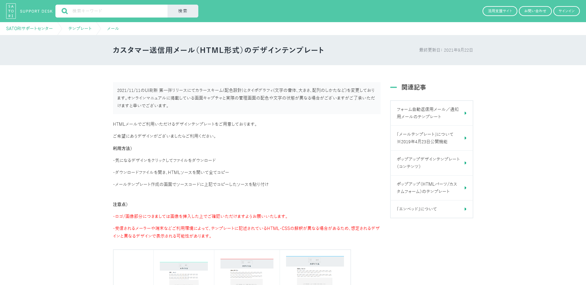 SATORIでは、1カラム、2カラムのシンプルなデザインのHTMLメールのテンプレートを無料ダウンロードできます。