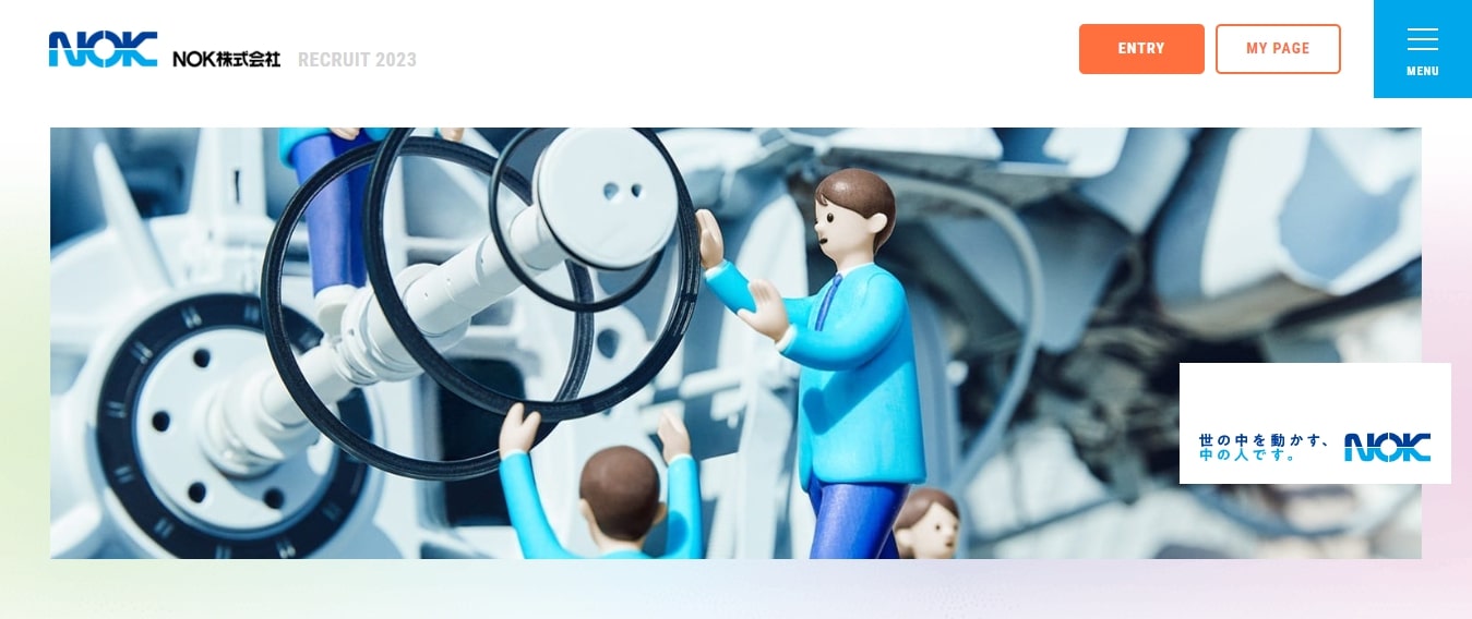 NOK株式会社の採用サイトは、イラストやアニメーションをうまく反映したデザインが特徴です。