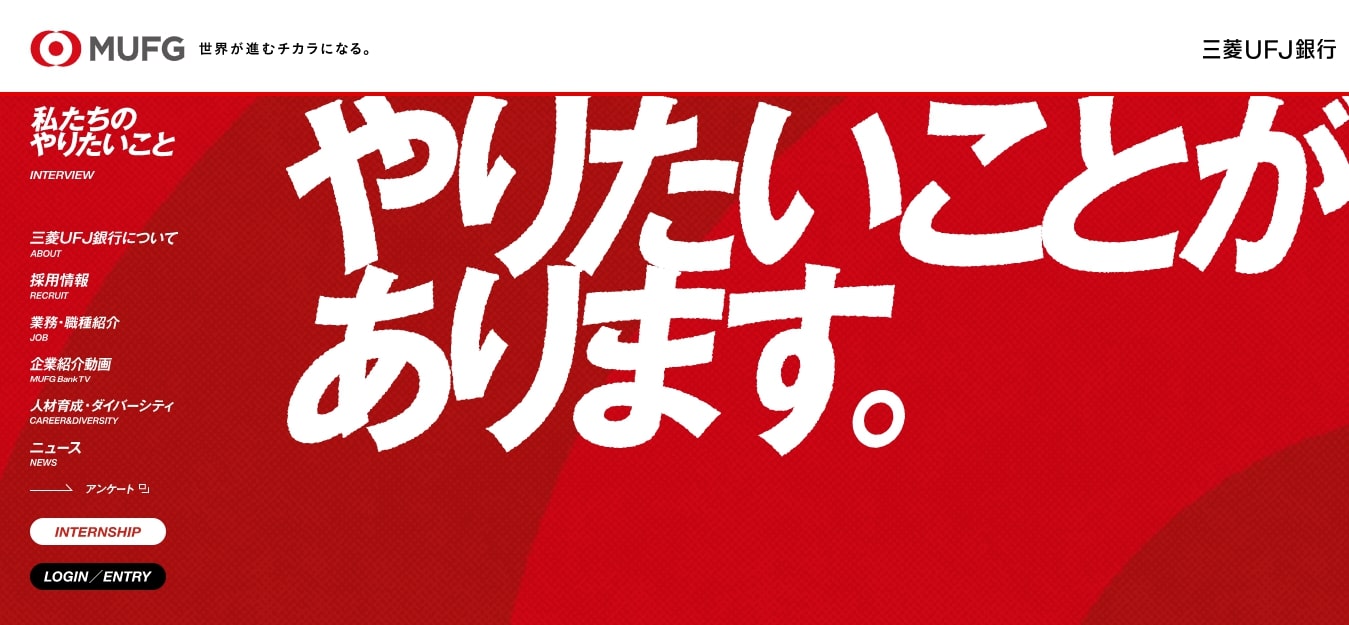 株式会社三菱UFJ銀行の採用サイトは、コーポレートカラーをうまく取り入れたデザインが特徴です。