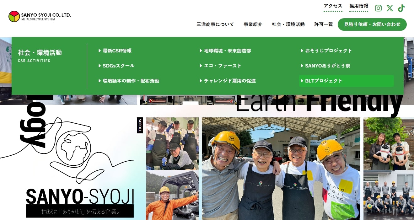 コーポレートサイトの画面上部にあるグローバルナビゲーションはメガメニューとなっており、目的の情報にすぐたどり着けるようになっています。